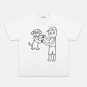 This t-shirt is a relaxed fit; true to size. We recommend sizing up if you prefer an oversized fit.